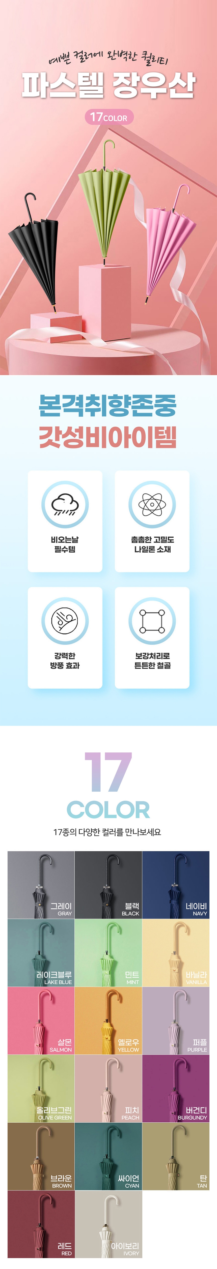 파스텔 장우산 고급 경량우산 튼튼한 우산 16K (17가지색상)