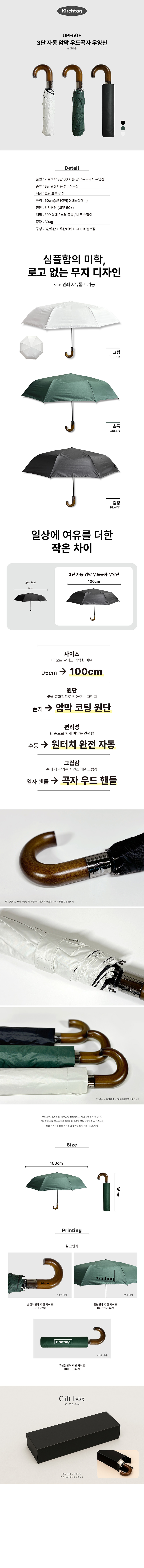 키르히탁 3단 자동 암막 우드곡자 우양산 (3색상)