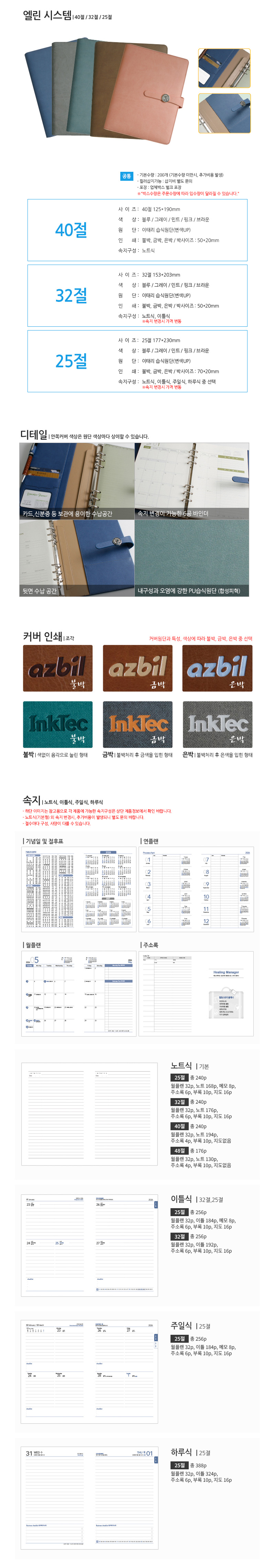 엘린 시스템 다이어리 40절/32절/25절