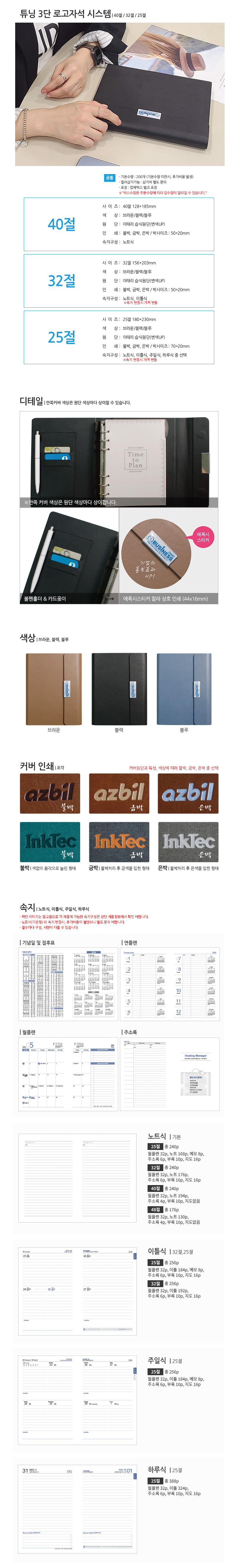 튜닝(로고) 3단자석 시스템 다이어리 40절/32절/25절