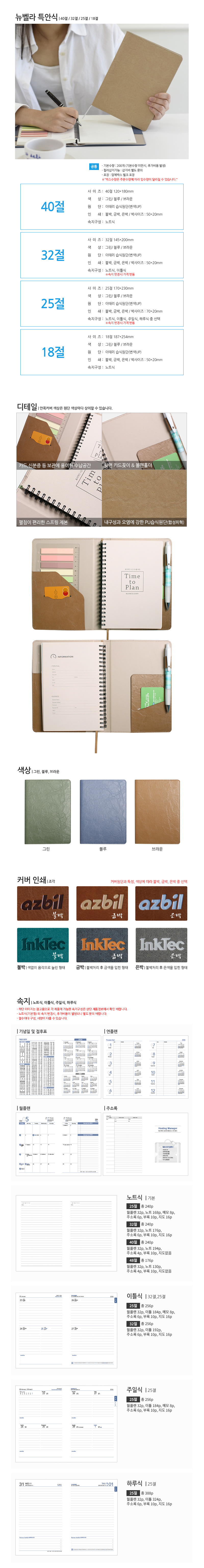 뉴벨라 특안식 다이어리 40절/32절/25절/18절